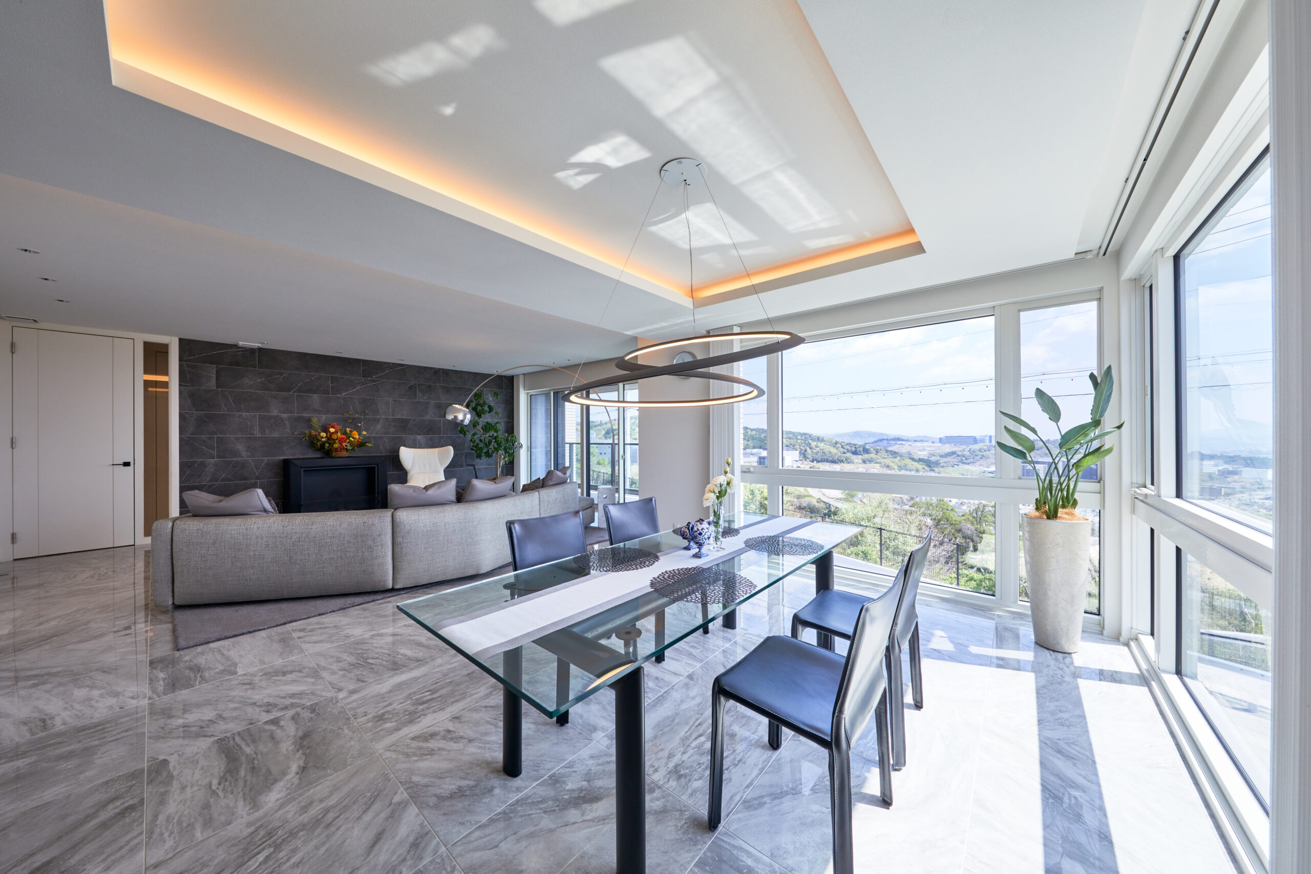 大きな窓や吹き抜けを活かして、柔らかな陰影と奥行きを表現できます。