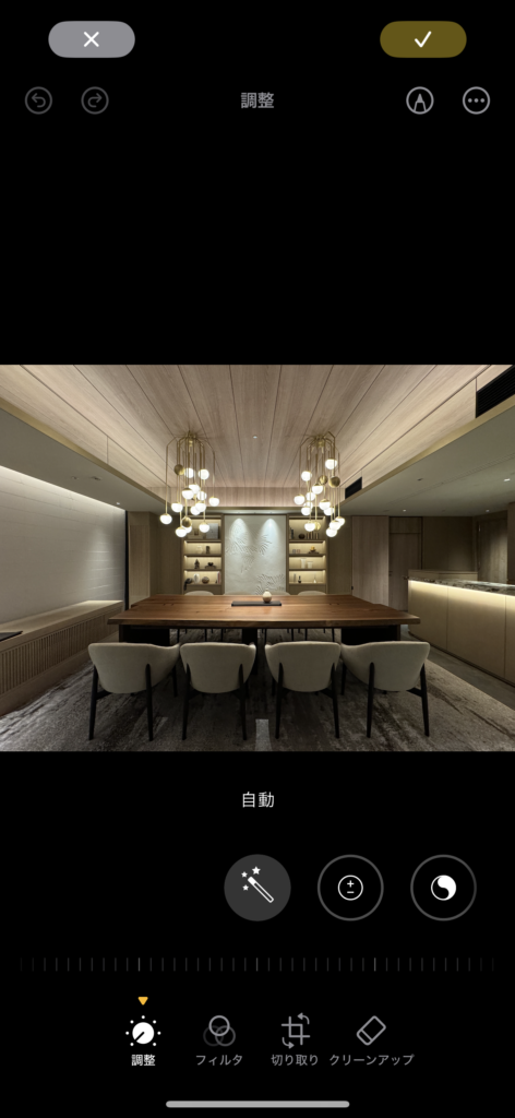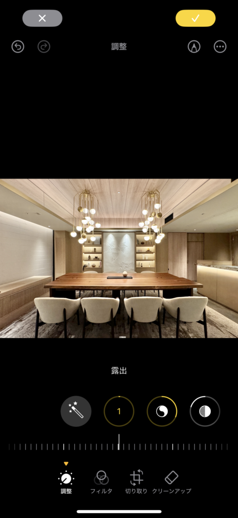 例えば、暗い写真は「露出」を上げる、黄色っぽい室内は「ホワイトバランス」を調整すると、より自然な仕上がりになります。