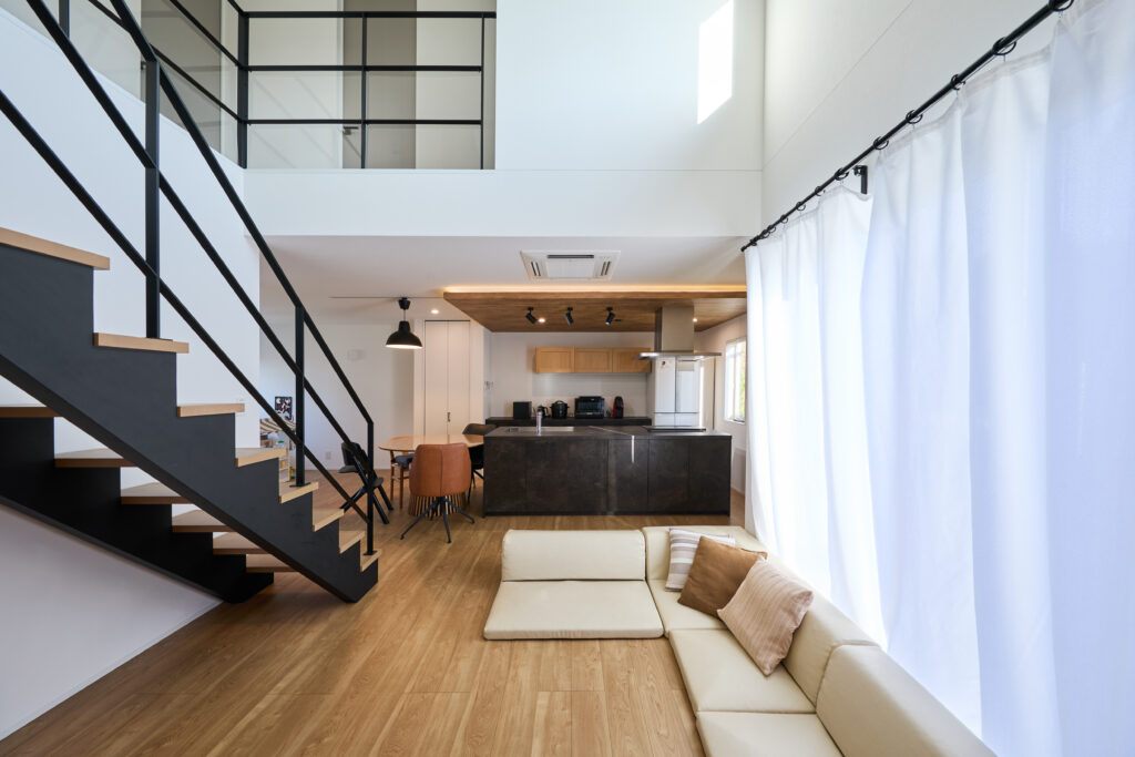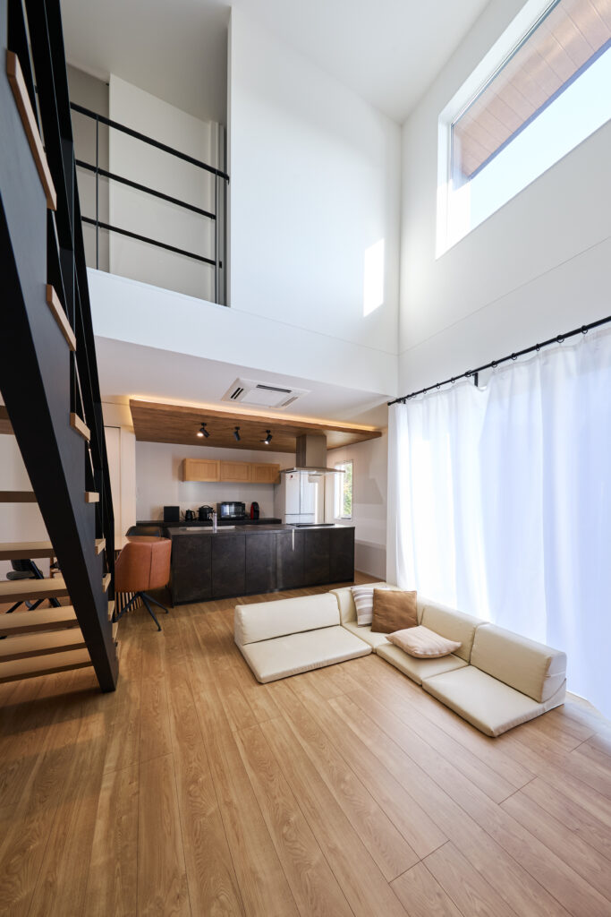 例えばこちらの写真では、吹き抜けの解放感がポイントなので、縦で天井の高さが伝わる撮り方をしました。
