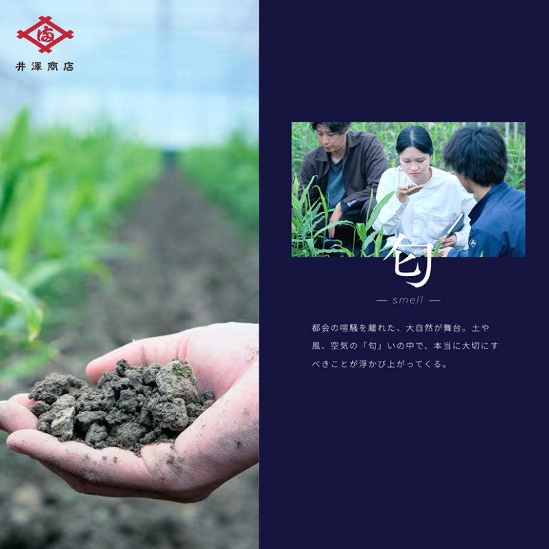 インターンシップの訪問場所や体験内容が一目で分かり、「農業界に変革を起こす」という井澤商店様が掲げるミッションに共感する学生に興味関心を持ってもらえるようなWEBサイトを作りたいとご要望があり、全体のディレクションからスチール撮影まで担当させていただきました。また、井澤商店様はWEBマーケティングにも注力していて、肥料商が持つ従来のイメージを払拭し、農業界に変革を起こす企業であるということや、全国各地を回って土地のものを楽しむ面白さや、農家様との関係性も伝わるようなサイトにしたいとご依頼をいただきました。
